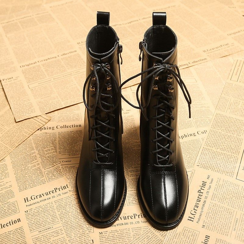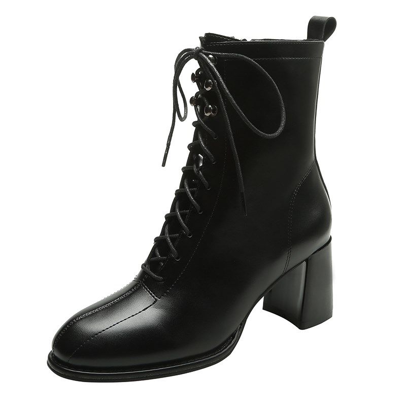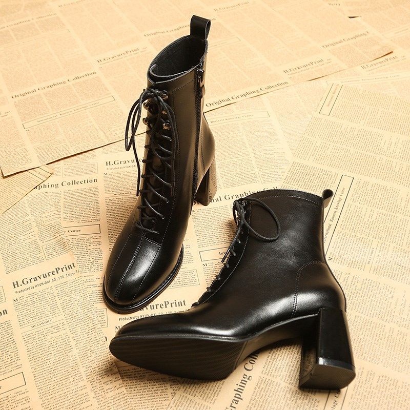 靴子女2024年秋冬季新款网红高跟粗跟圆头短靴春秋单靴百搭马丁靴