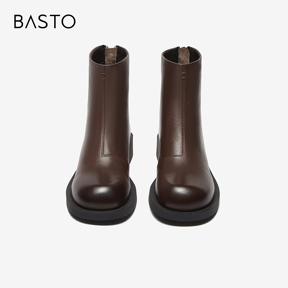 百思图冬季新款商场同款时尚通勤休闲靴粗跟女短靴UJD01DD4