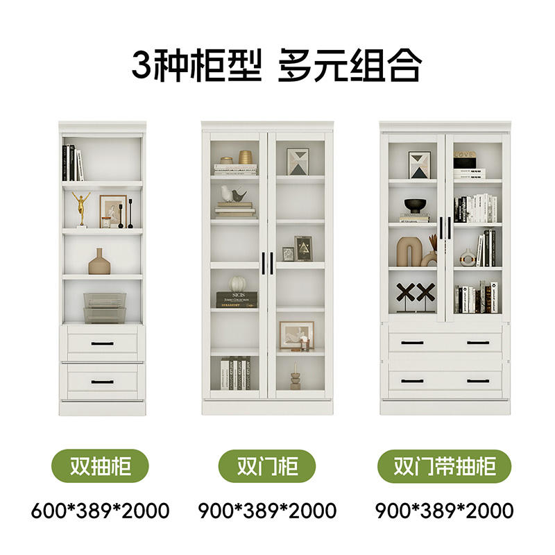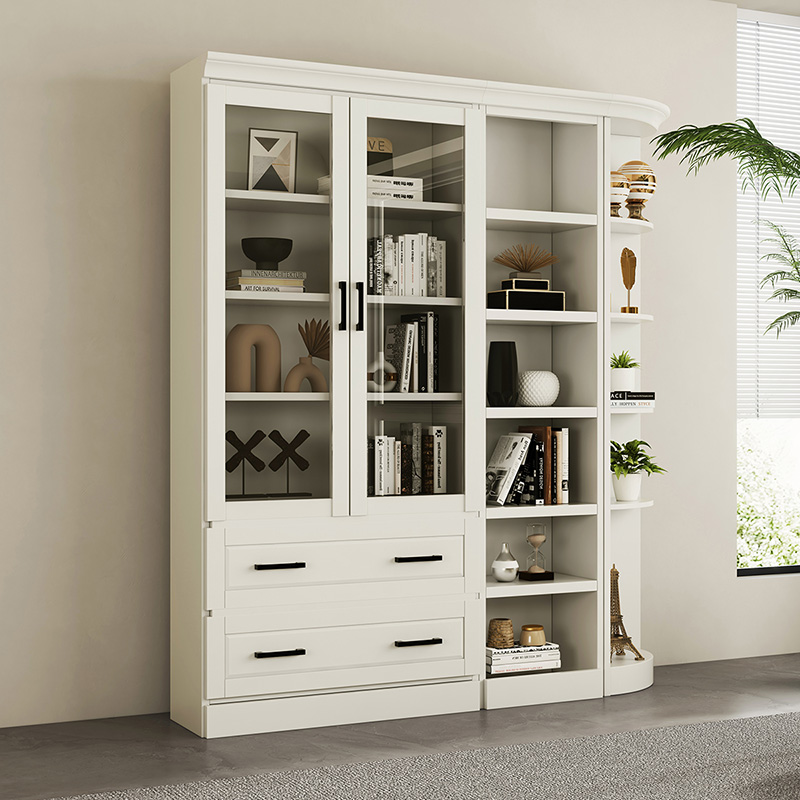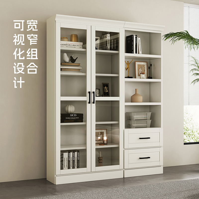 喜梦宝法式实木书柜大容量收纳白色现代简约设计书房储物柜展示柜