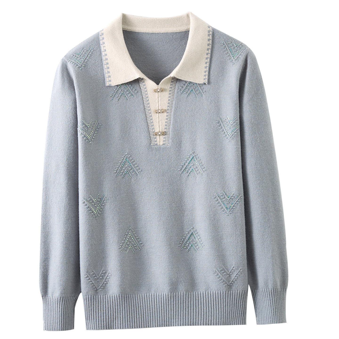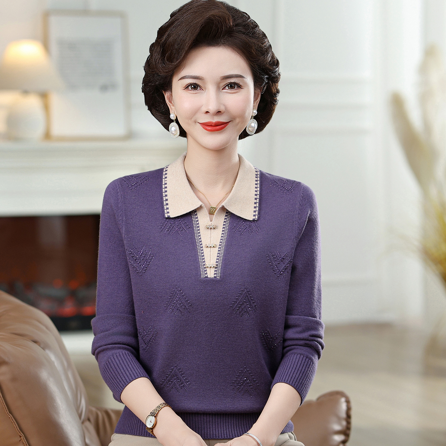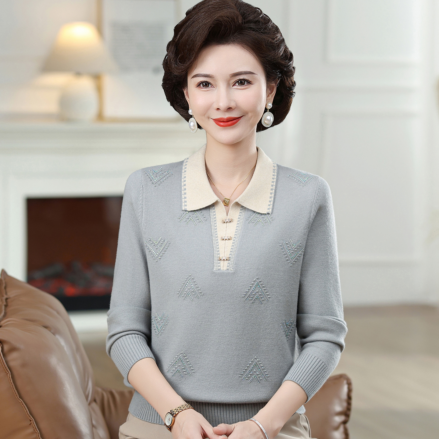 鄂尔多斯市女士老人羊毛衫妈妈秋冬红色毛衣女2025新款老年针织衫