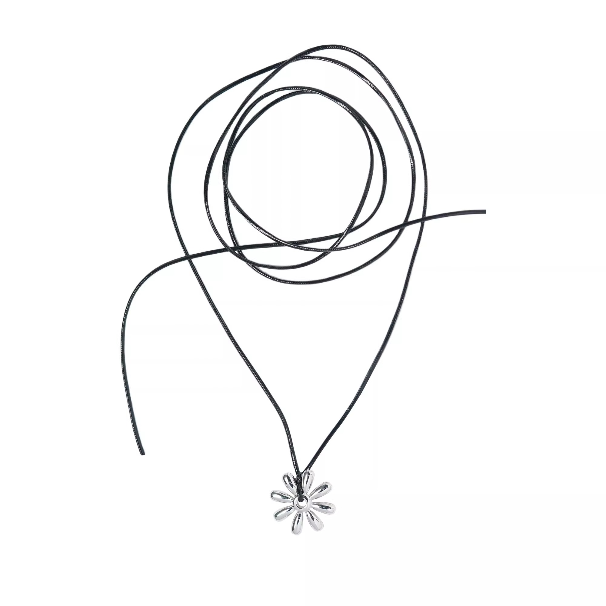 繁花趣味花花皮绳项链长款韩国小众个性绑绳颈绳毛衣链挂件高级感