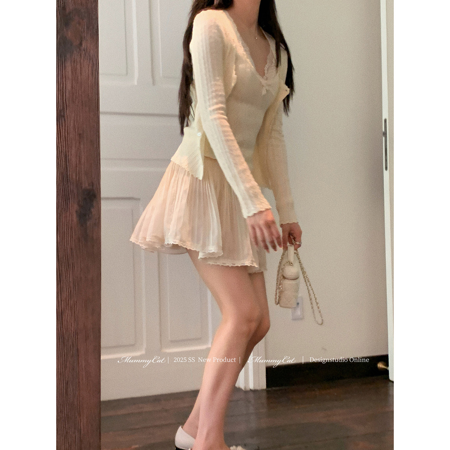 Mummy Cat下蛋喵【蜜桃苏打】新品醋酸蕾丝边轻透百褶半身短裙