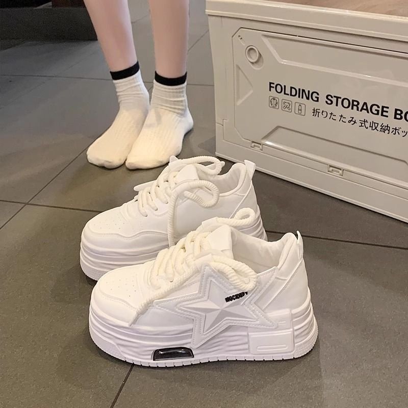 2025五角星厚底松糕板鞋女时尚休闲鞋学生小白鞋女增高时尚百搭