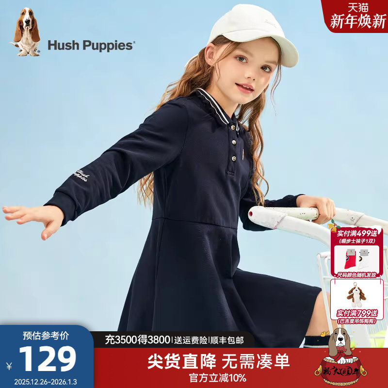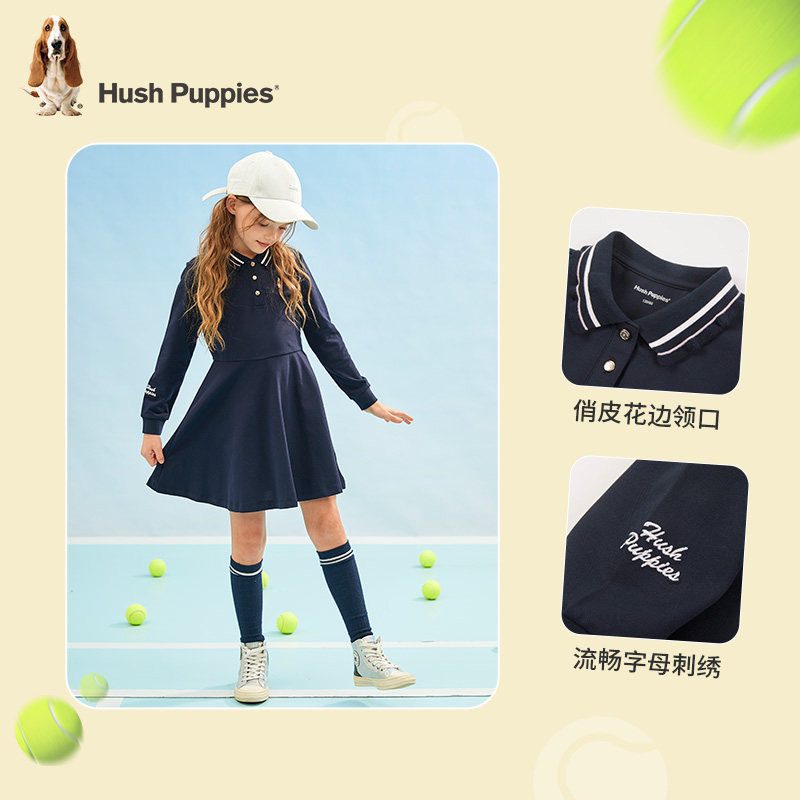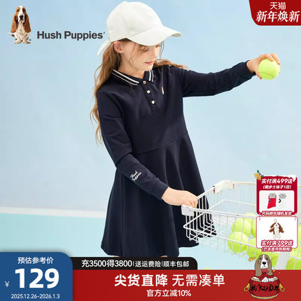暇步士童装女童连衣裙春秋新款中大童学院风甜美长袖裙儿童POLO裙