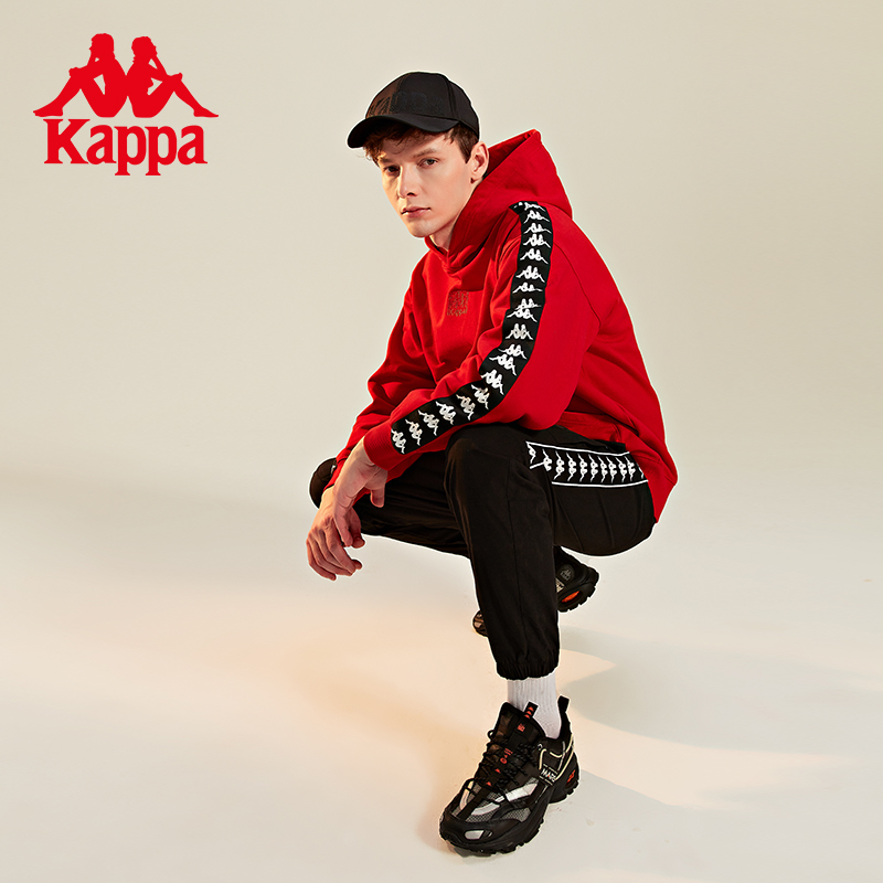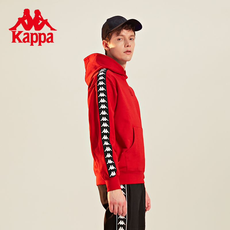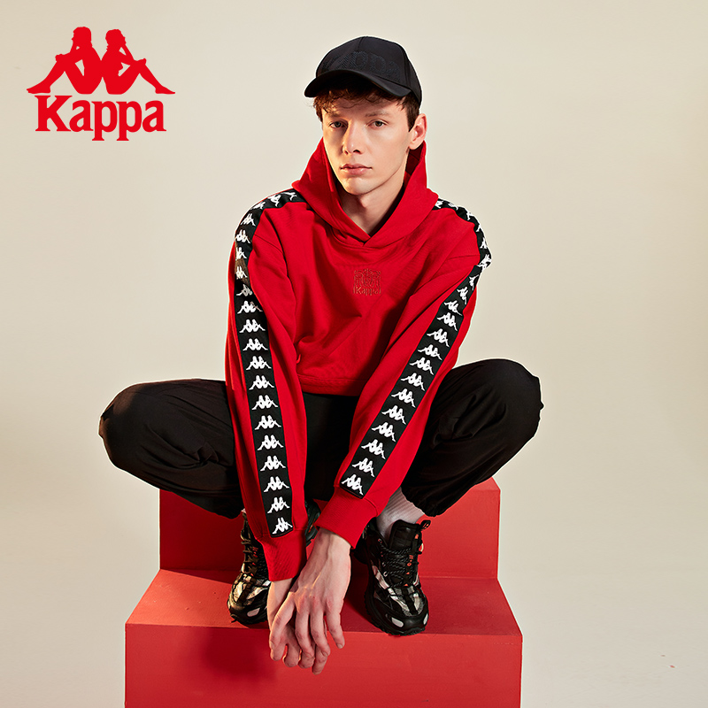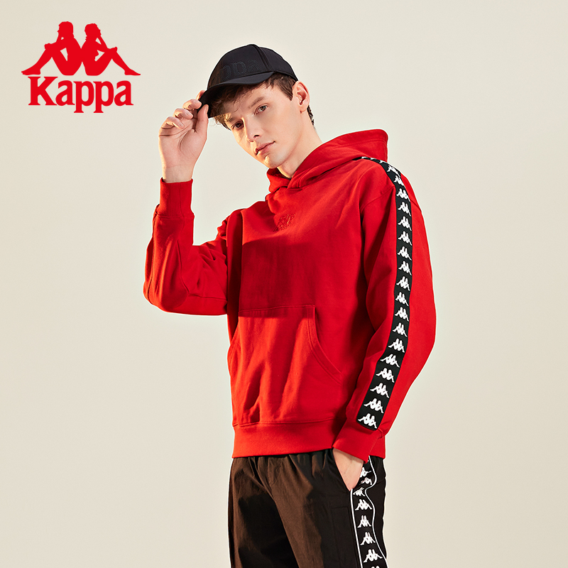 Kappa卡帕背靠背新年红色卫衣背靠背情侣男女套头帽衫长袖外套