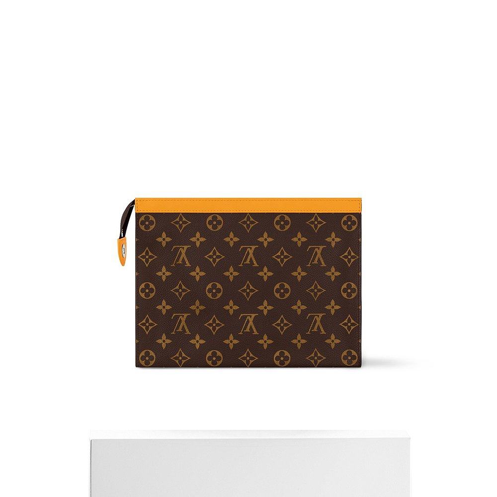 欧洲直邮LV/路易威登 Voyage MM男士藏红花黄老花帆布拉链手拿包