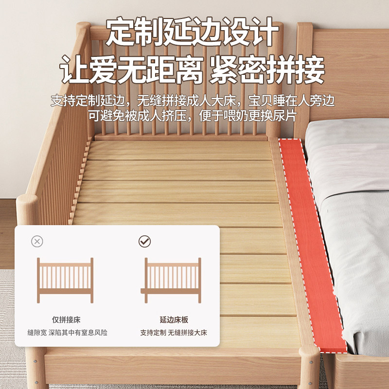 实木儿童拼接床婴儿床边加宽神器平接大床定制男女宝宝带护栏小床