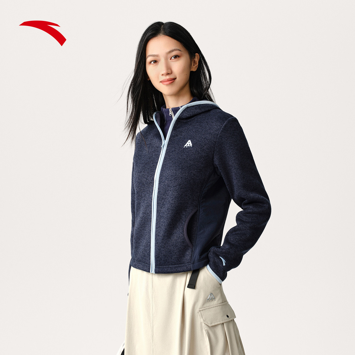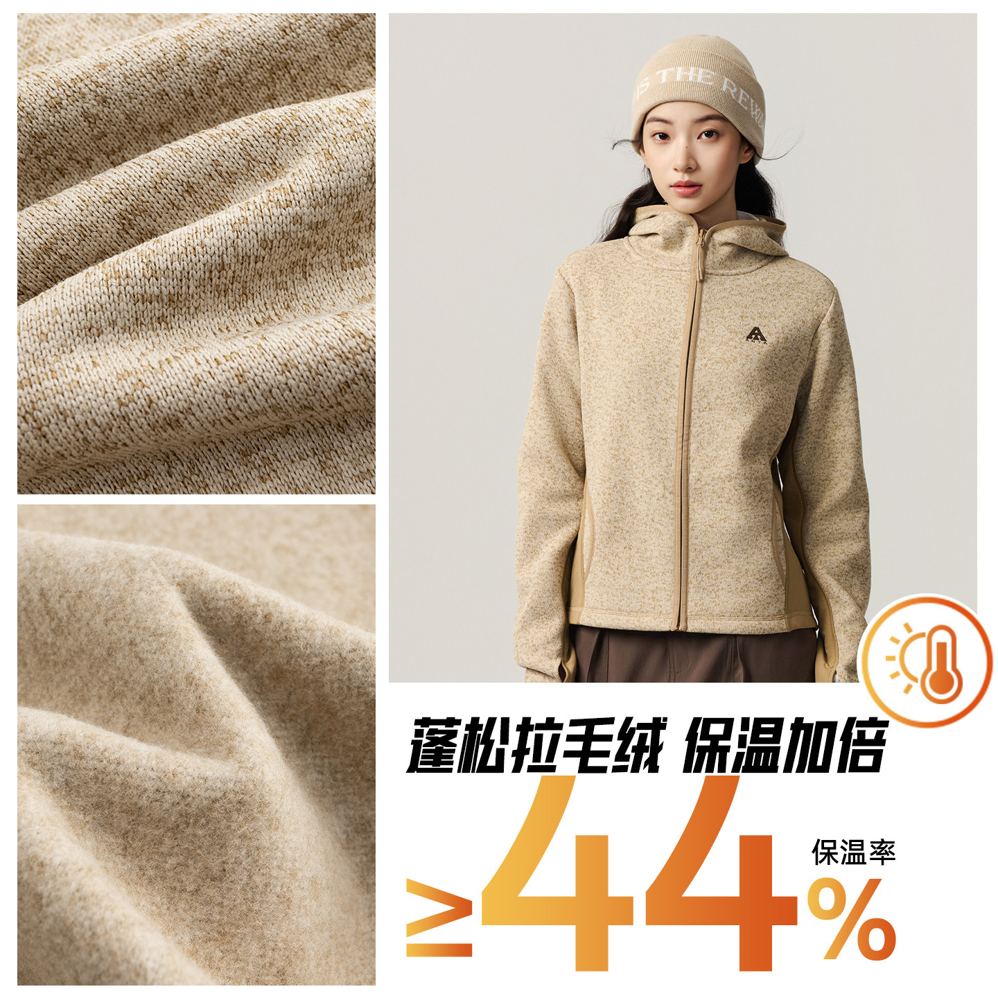 安踏火壳粗针抓绒衣丨大地之壳户外连帽外套女装秋冬新款运动上衣