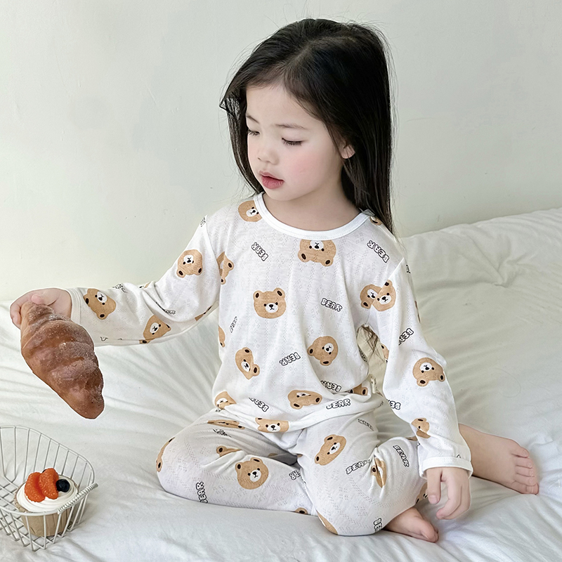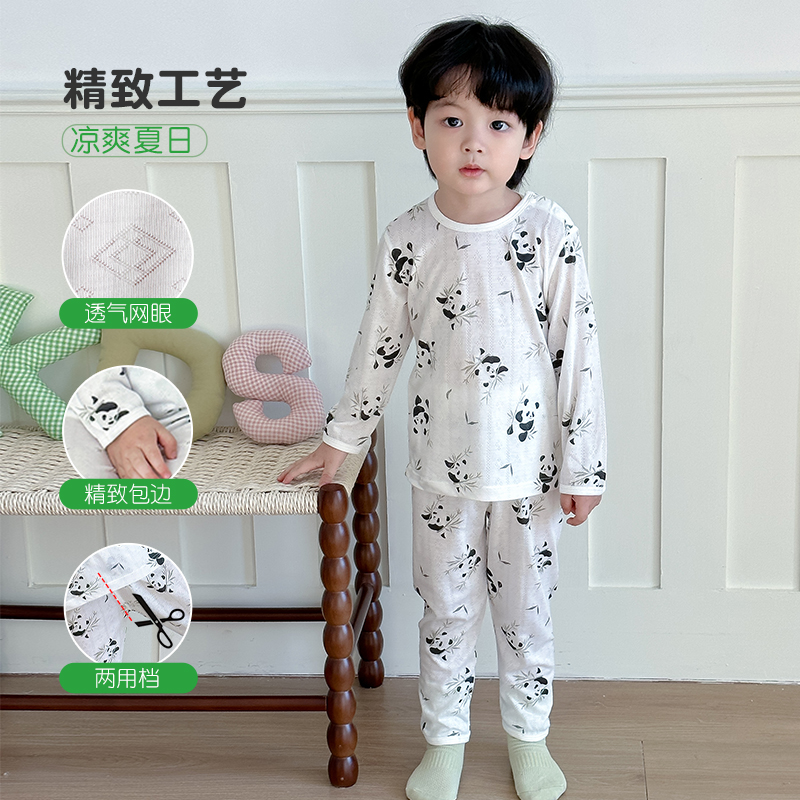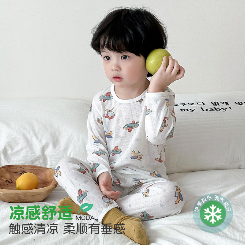 儿童夏季睡衣长袖男童家居服女宝宝薄款小孩网眼竹纤维空调服套装