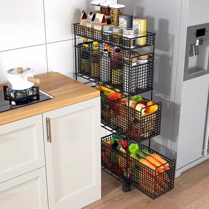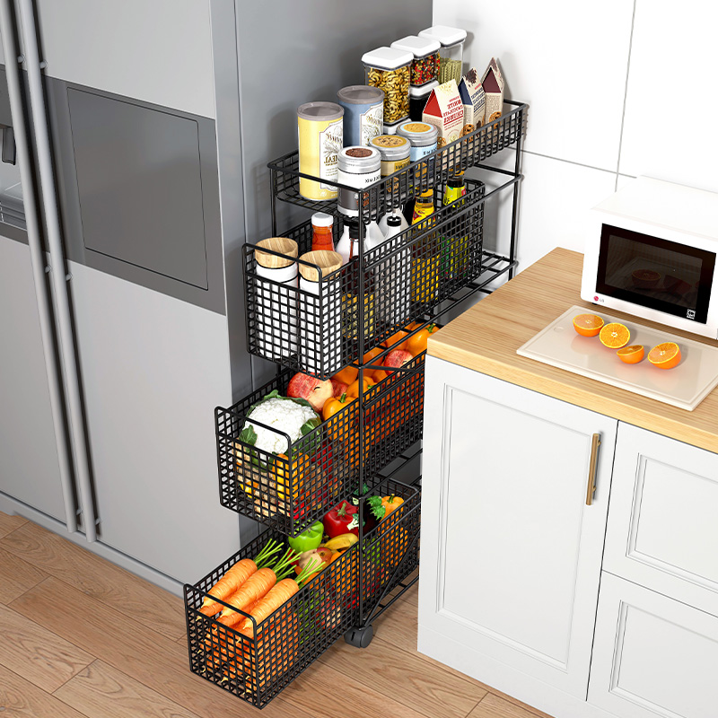 夹缝置物架抽拉式厨房蔬菜收纳架落地多层冰箱放菜架子缝隙菜篮子