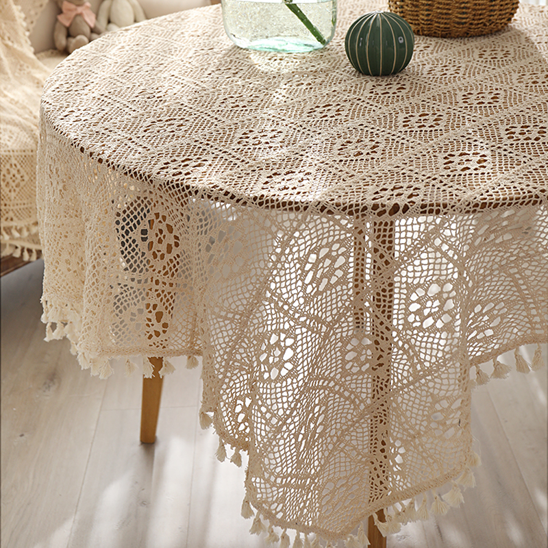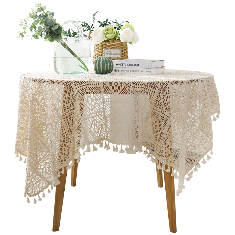 田园蕾丝钩针纯棉桌布镂空流苏花边餐桌茶几多功能盖巾盖布定制