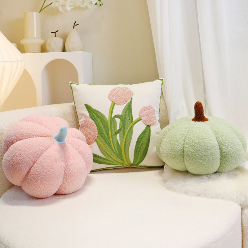 ins郁金香南瓜抱枕卡通创意时尚靠垫粉色夏季靠枕全棉枕套田园风