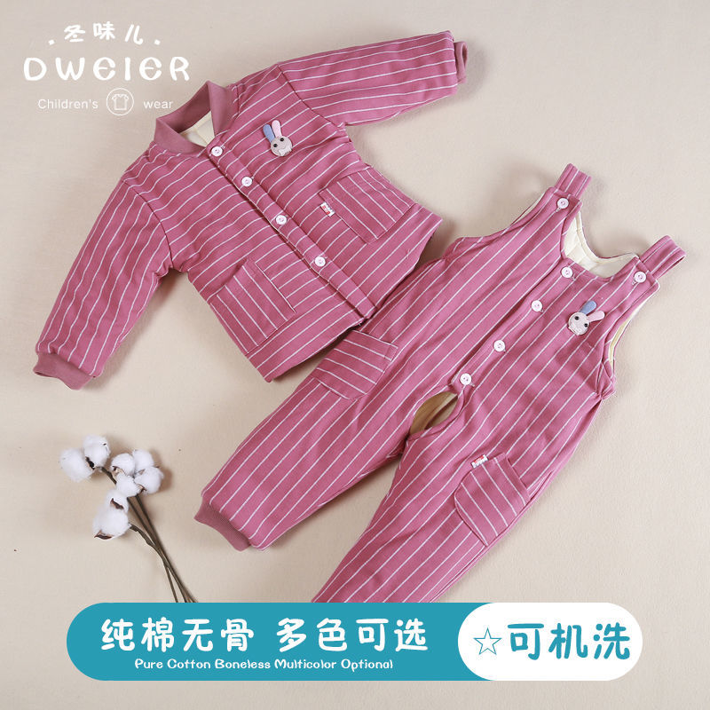 婴儿手工棉衣宝宝冬装花加厚男女小孩棉袄儿童背带裤套装冬季