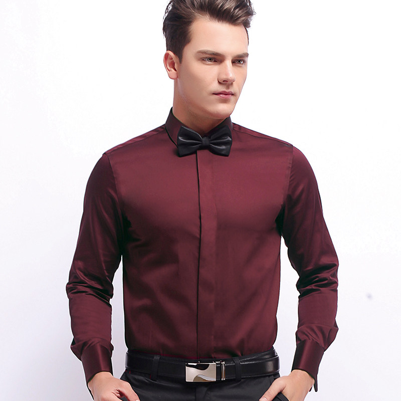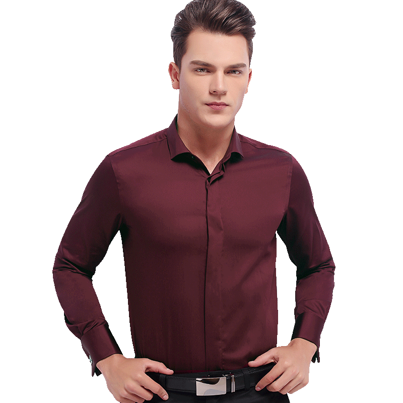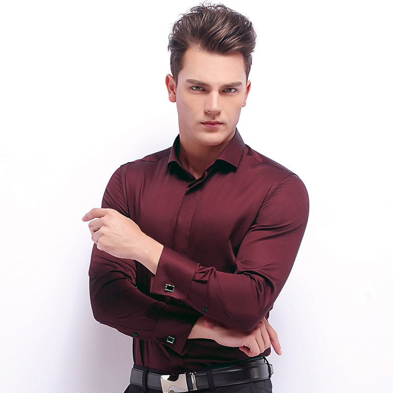 法式衬衫男长袖商务免烫袖钉枣红寸衣新郎结婚婚礼酒红色男士衬衣
