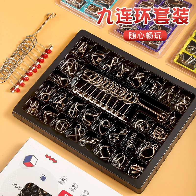 九连环智力解锁环解扣儿童益智玩具鲁班锁孔明锁全套小学生24件套