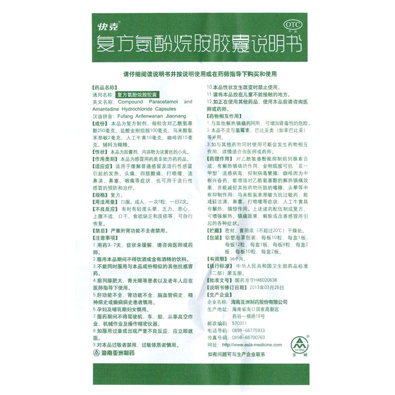 【快克】复方氨酚烷胺胶囊10粒/盒