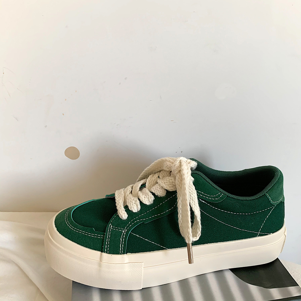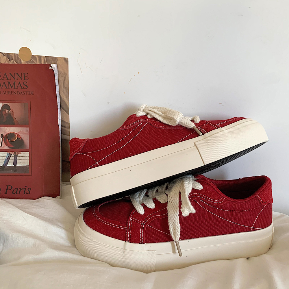 金屿鹿复古酒红厚底帆布鞋女2024新款韩版ins港风街拍休闲板鞋潮