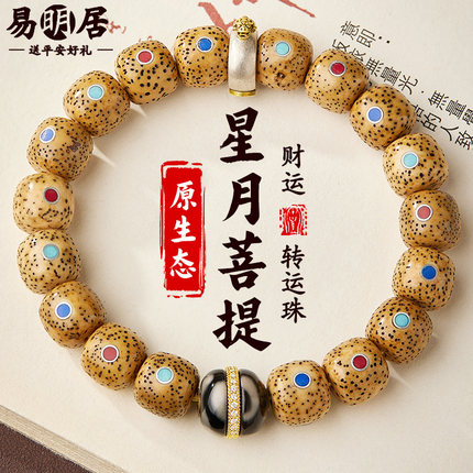 星月菩提手串鸡油黄原生态阴皮原籽文玩佛珠玛瑙单圈转运手链男女
