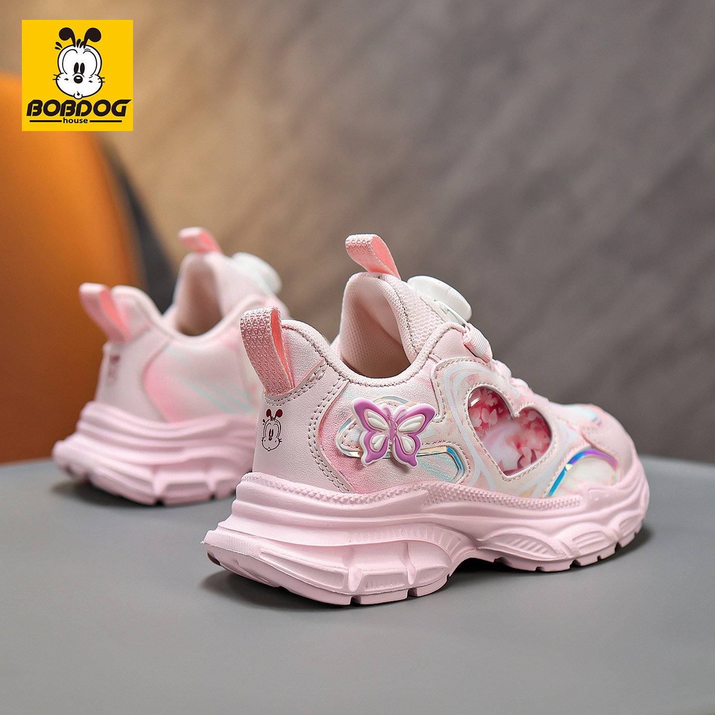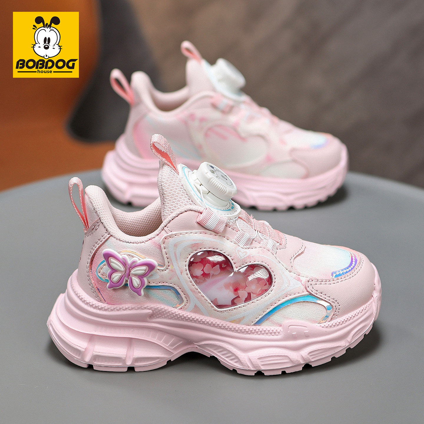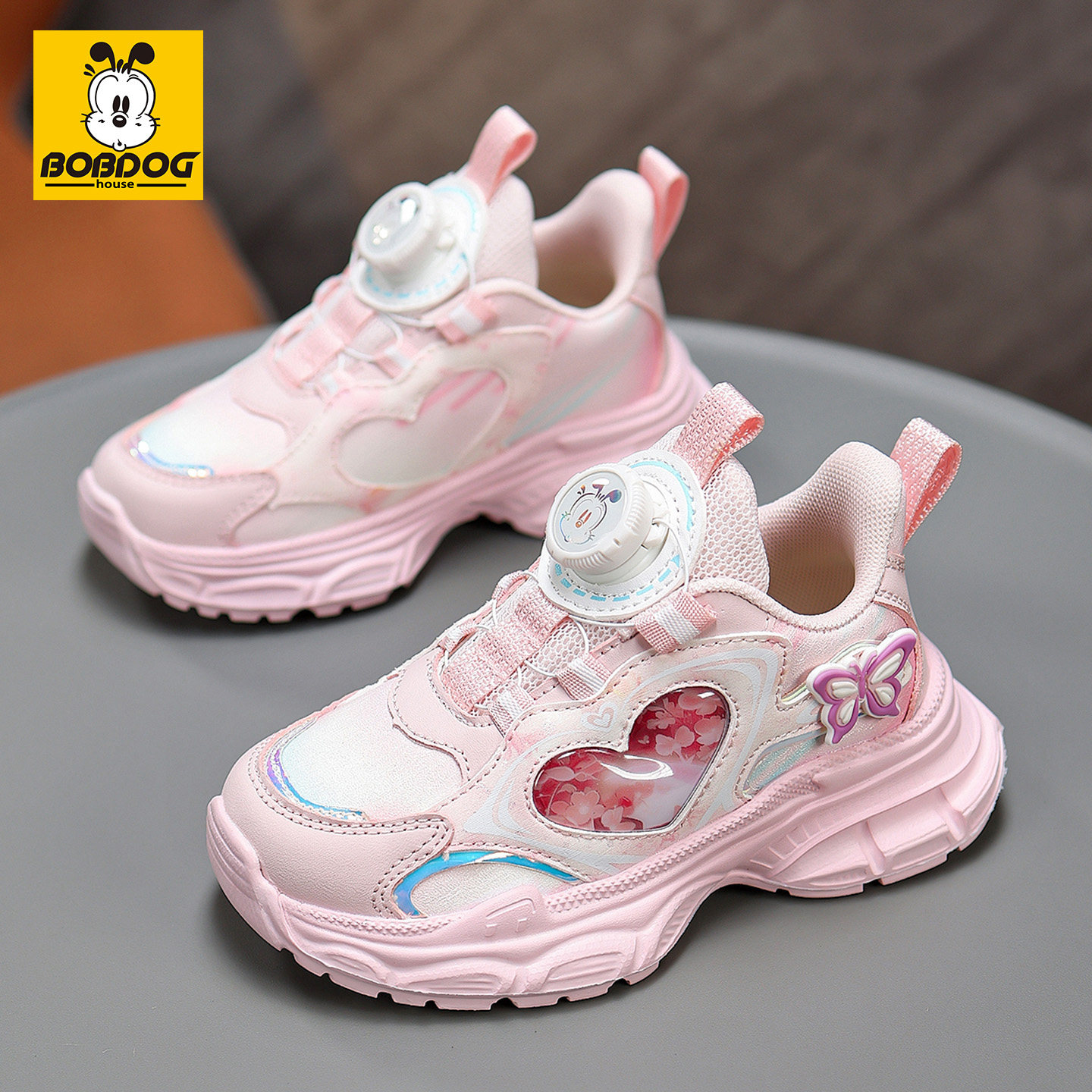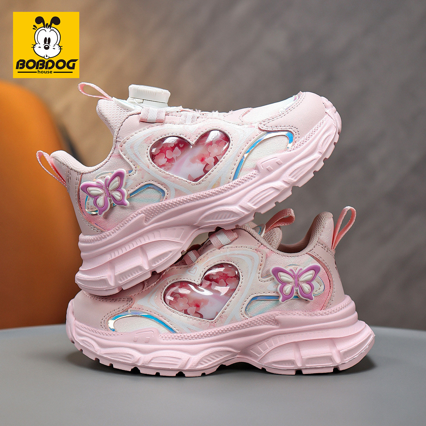 巴布豆女童二棉鞋运动鞋子2025新秋冬皮面保暖加绒女孩儿童跑步鞋