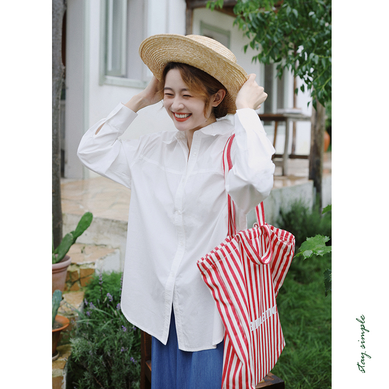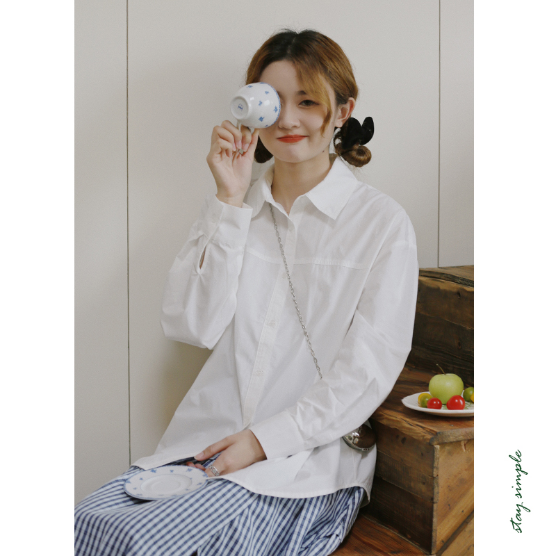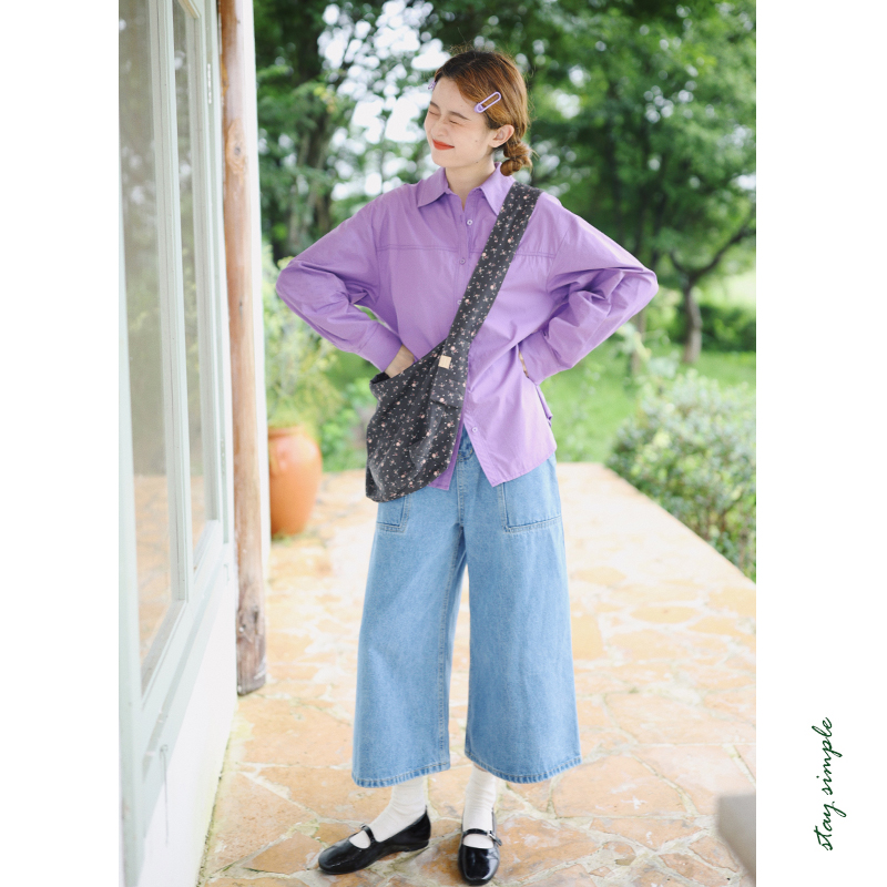 花吉B796葡萄紫色翻领纯棉基础款长袖衬衫女2025新款秋宽松衬衣