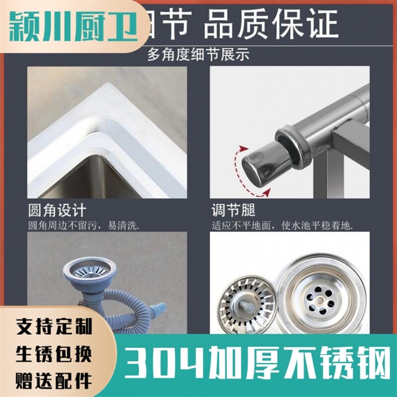 304不锈钢食堂水槽水池池双家用洗菜池洗碗商用厨房池三槽洗刷盆