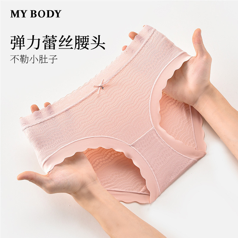 3件129|商场同款MYBODY轻薄纯棉底裆肌理包臀蕾丝腰头内裤女