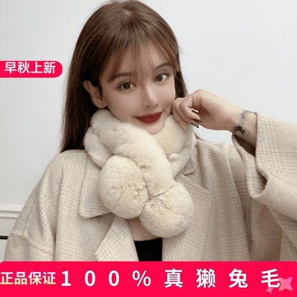真毛獭兔毛围巾女冬季保暖学生百搭可爱交叉皮草围脖濑兔毛绒加厚