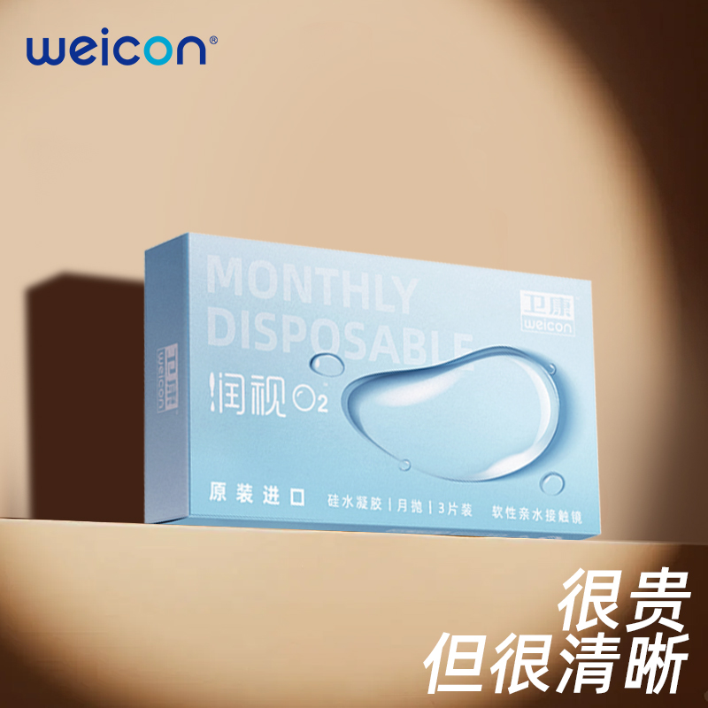 卫康润视O2硅水凝胶月抛3片近视隐形眼镜高透氧水润舒适官方正品
