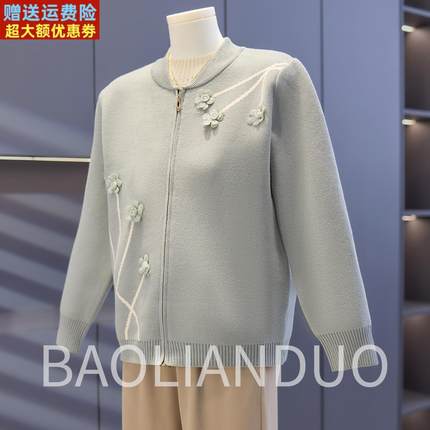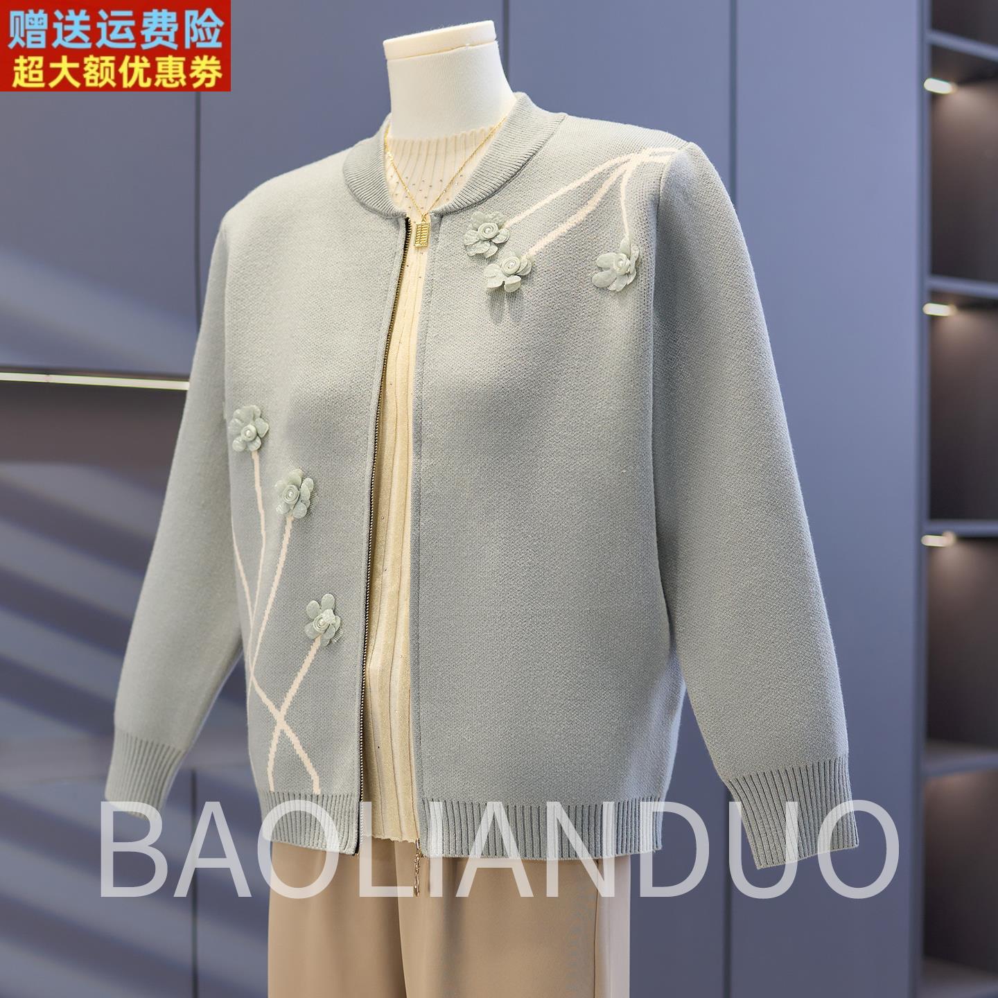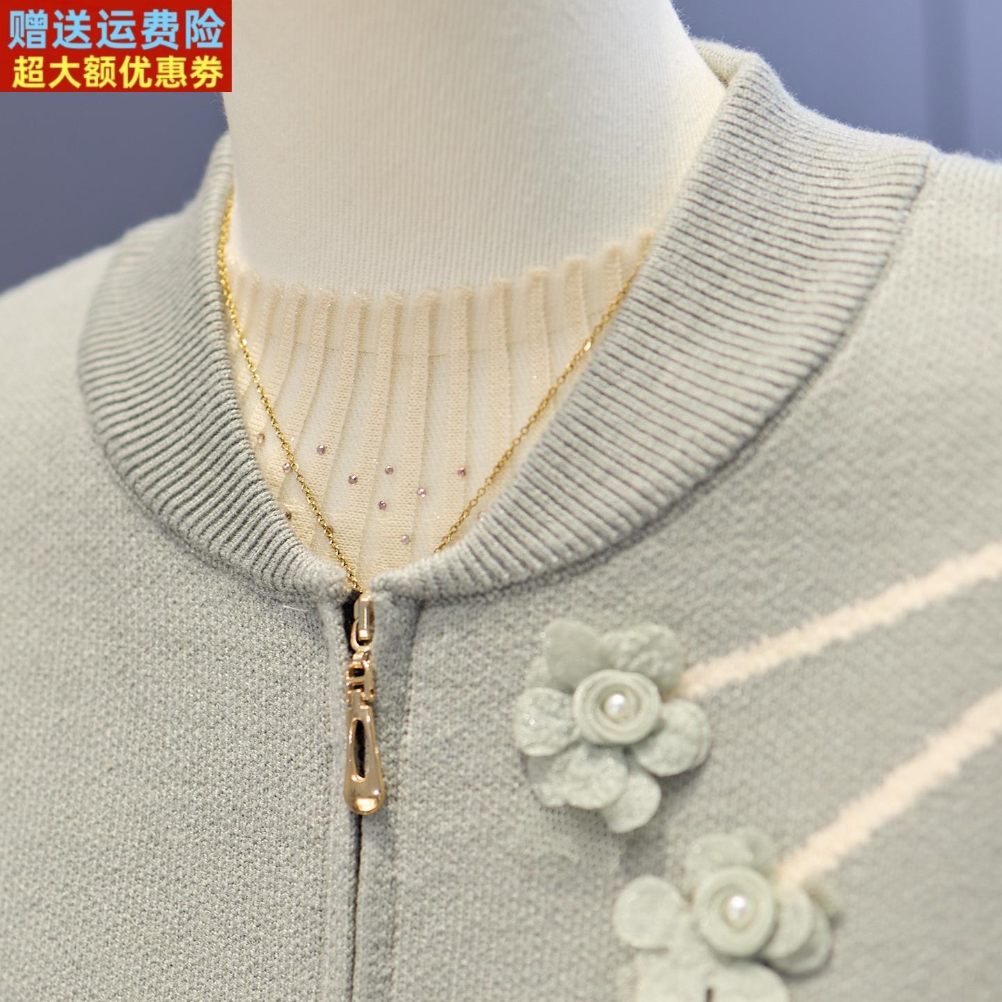 妈妈春秋装针织夹克中年女装洋气短款绣花上衣中老年气质薄款外套