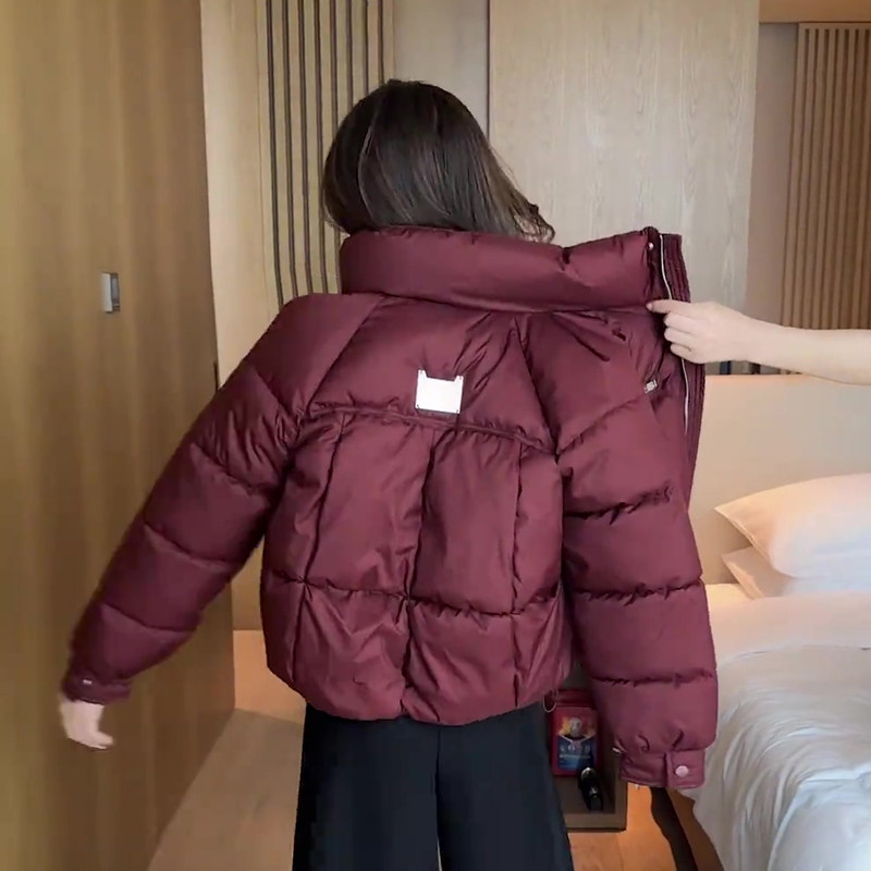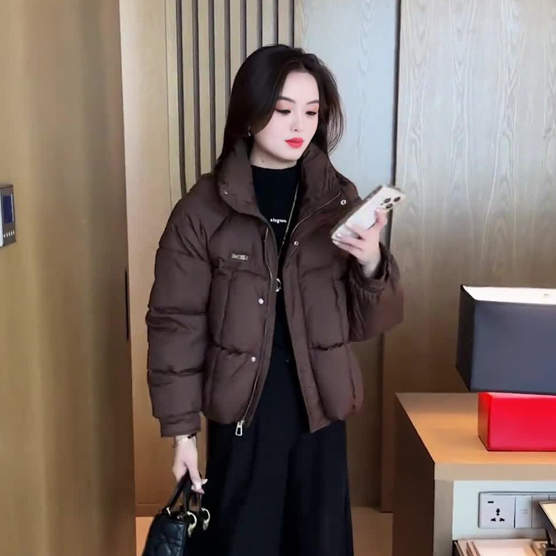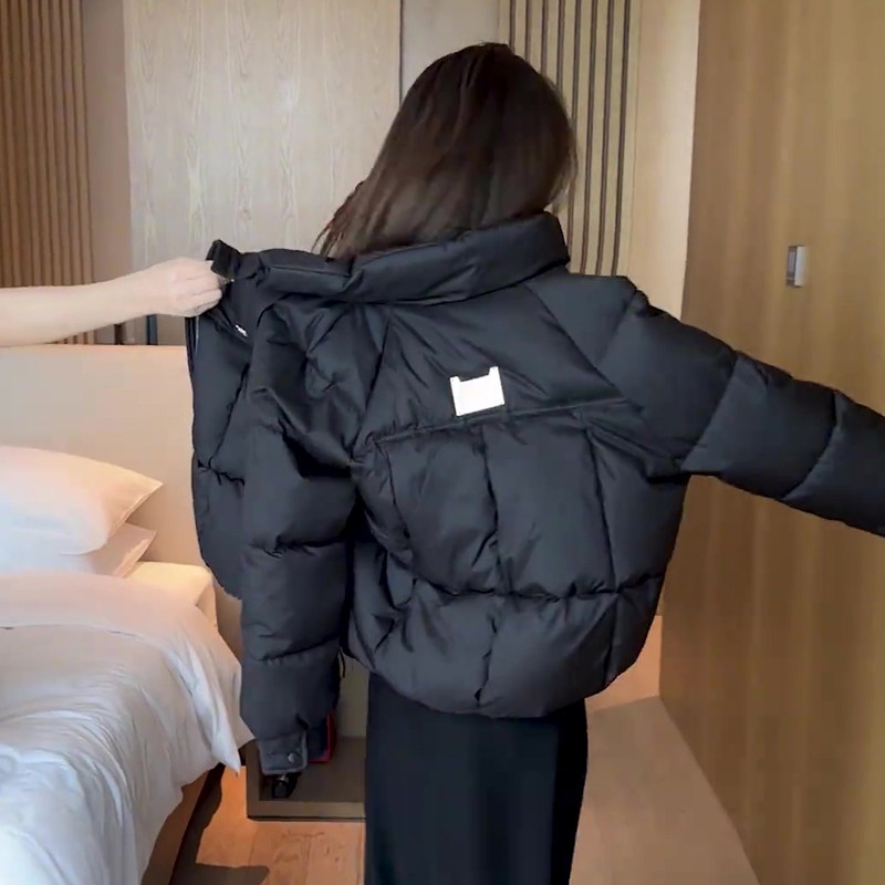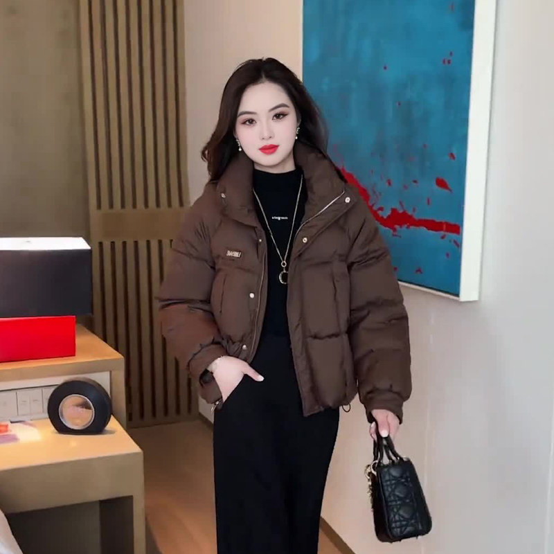 缪真短款宽松立领时尚棉服女