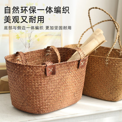 闲储海草编创意便携野餐手提篮家用买菜插花摆件购物篮收纳篮