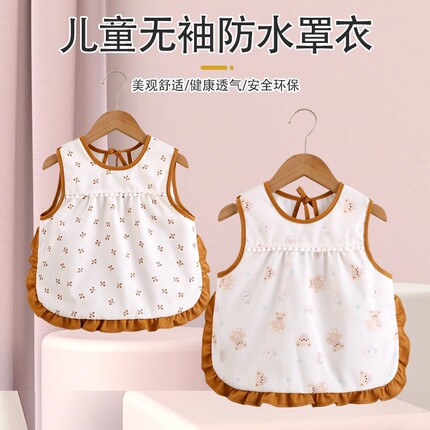 夏季无袖宝宝吃饭围兜防水防脏儿童罩衣围裙女宝婴幼儿反穿衣护衣