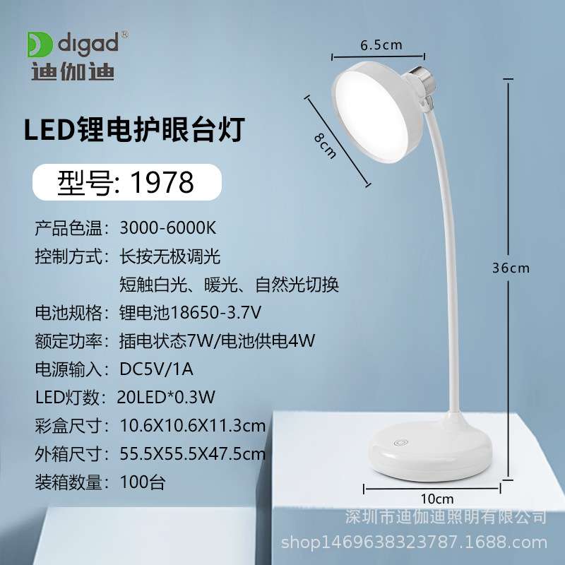 新款LED护眼阅读台灯 高显充电台灯充插两用三档调色无极调光夜灯