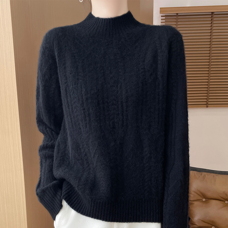 加厚100纯羊毛针织衫女2024秋冬新款半高领打底衫绞花羊绒衫毛衣