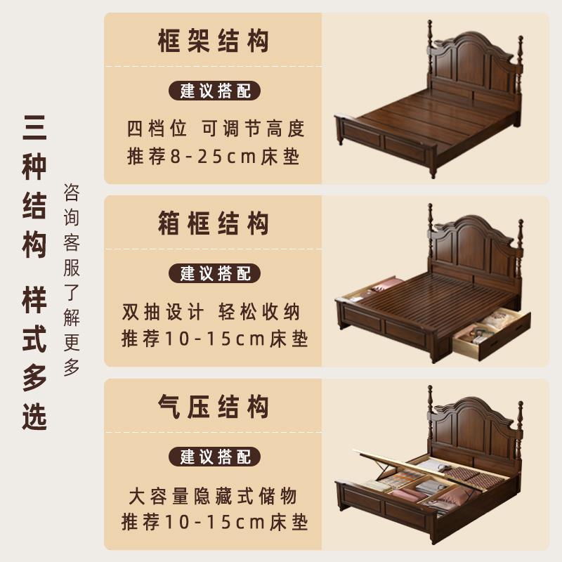 实木双人床美式1.8米黑胡桃色主卧复古1.5m现代简约婚床家用大床