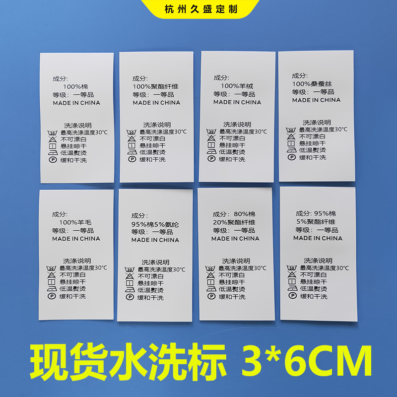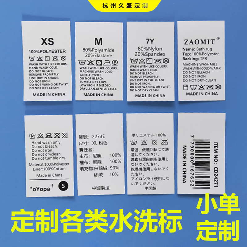 水洗标定制 水洗唛定制 成份标 洗水标 尺码标 服装水洗布标打印