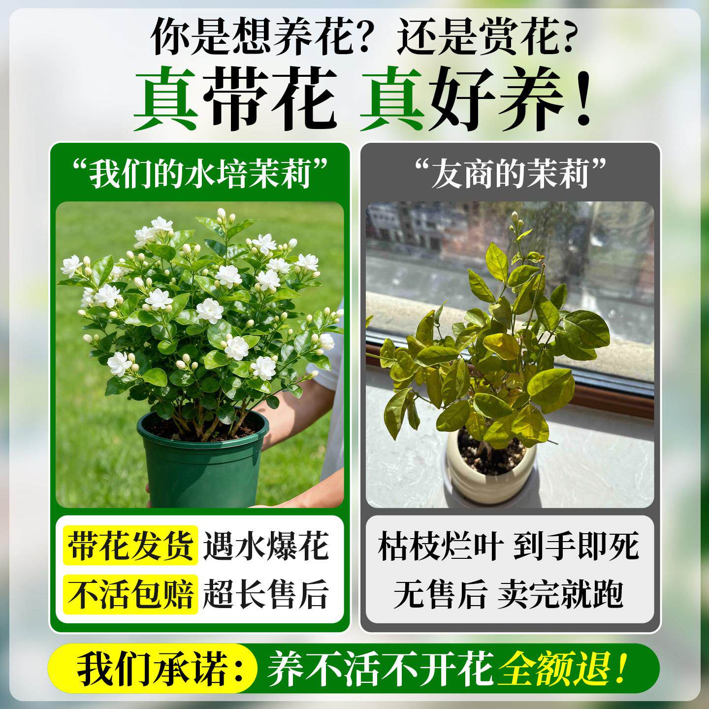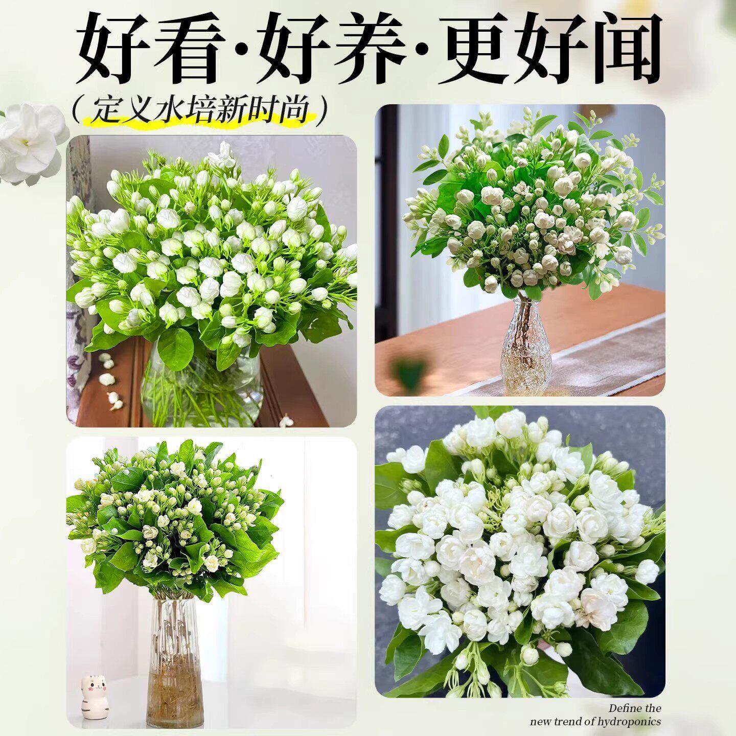 茉莉花盆栽带花苞水培植物办公室内桌面花卉绿植水养鲜花四季开花