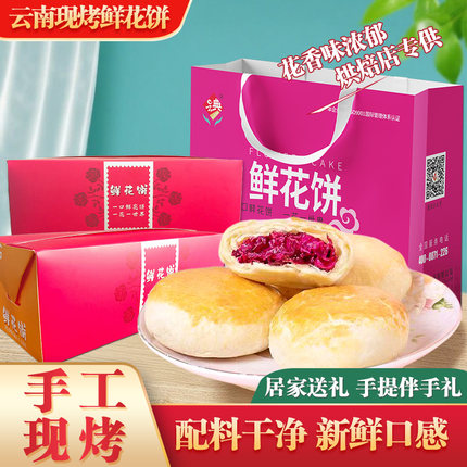 玫瑰鲜花饼手工现烤鲜花月饼云南特产蛋糕点零食礼盒节日送礼点心