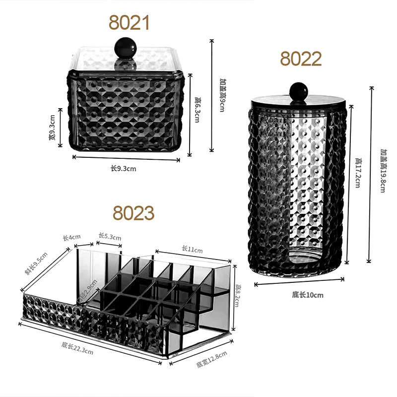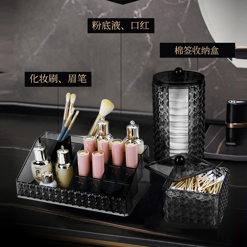 化妆棉收纳盒黑色透明亚克力钻石纹盒子桌面整理带盖棉签盒子