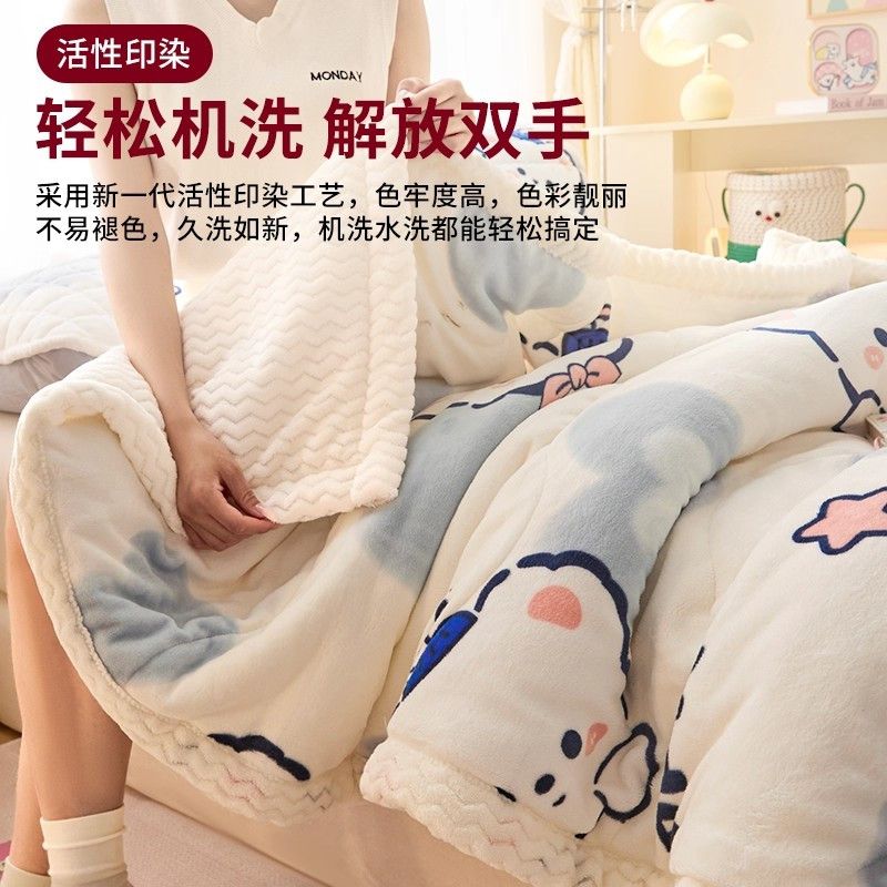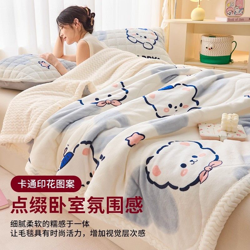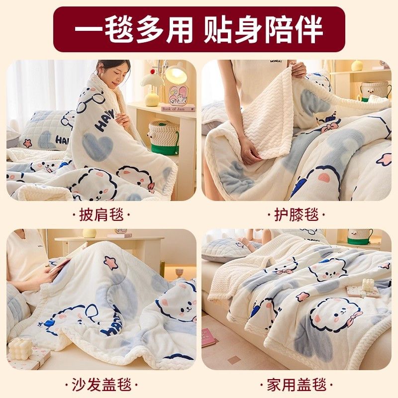 ABS新款秋冬三层加厚保暖牛奶绒毛毯床上用盖毯沙发午睡小毯子