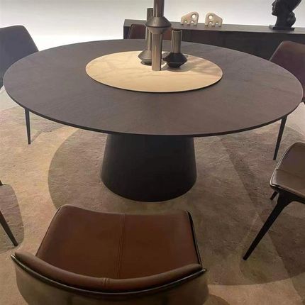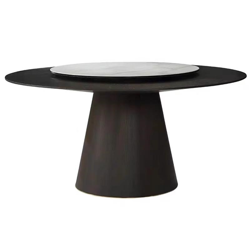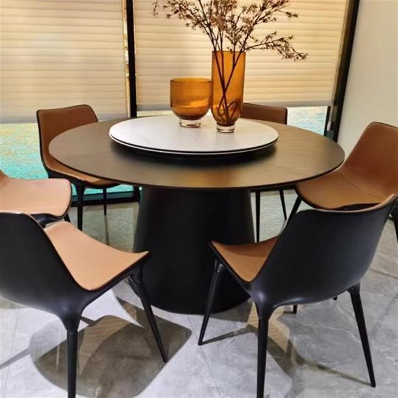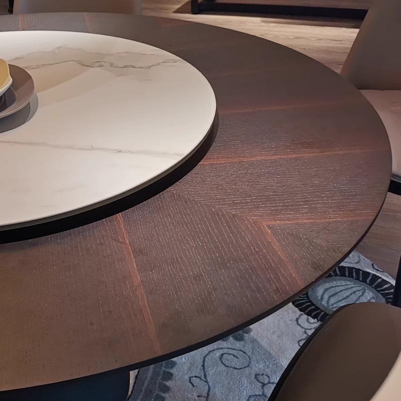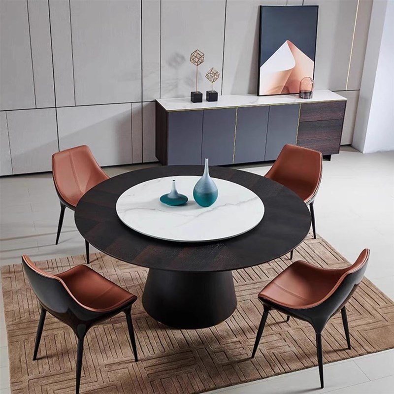 意式极简圆形餐桌实木椅轻奢简约现代家用饭桌北欧实木Z圆桌带转