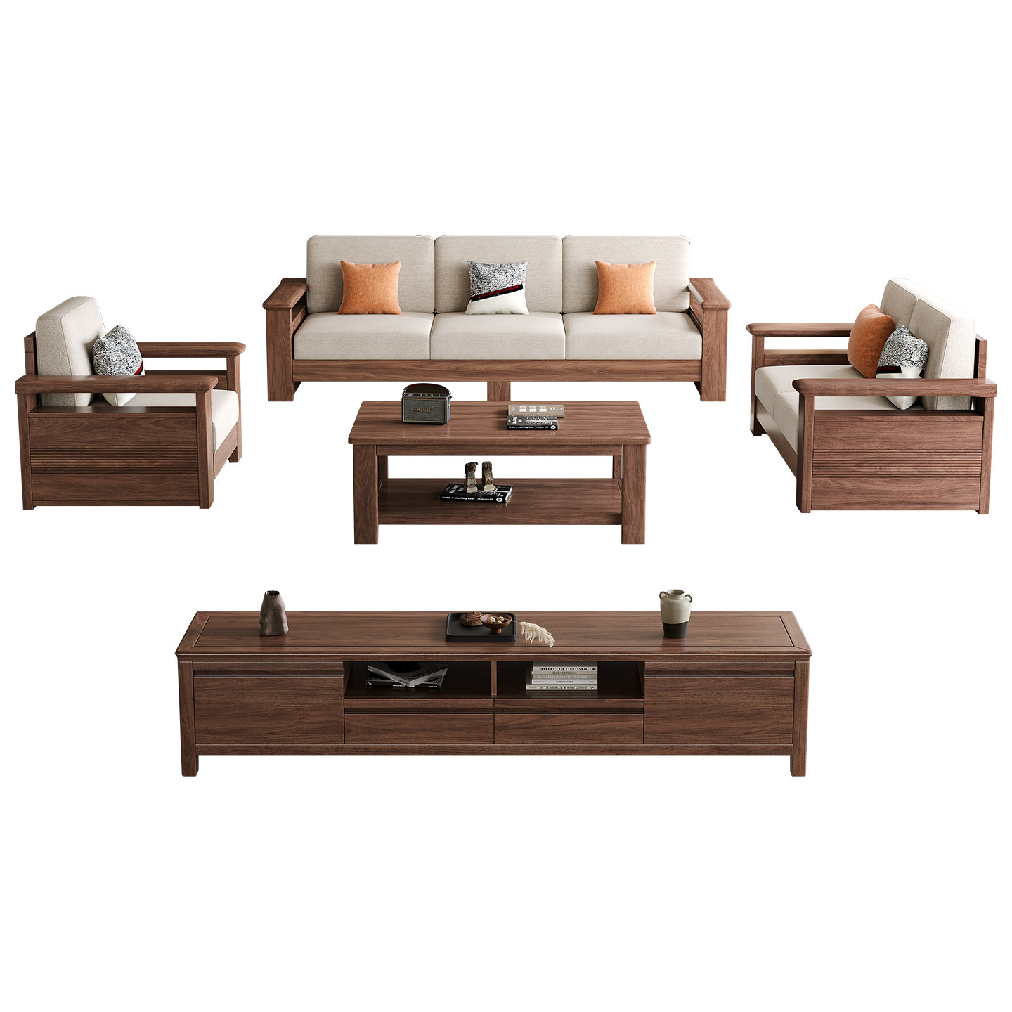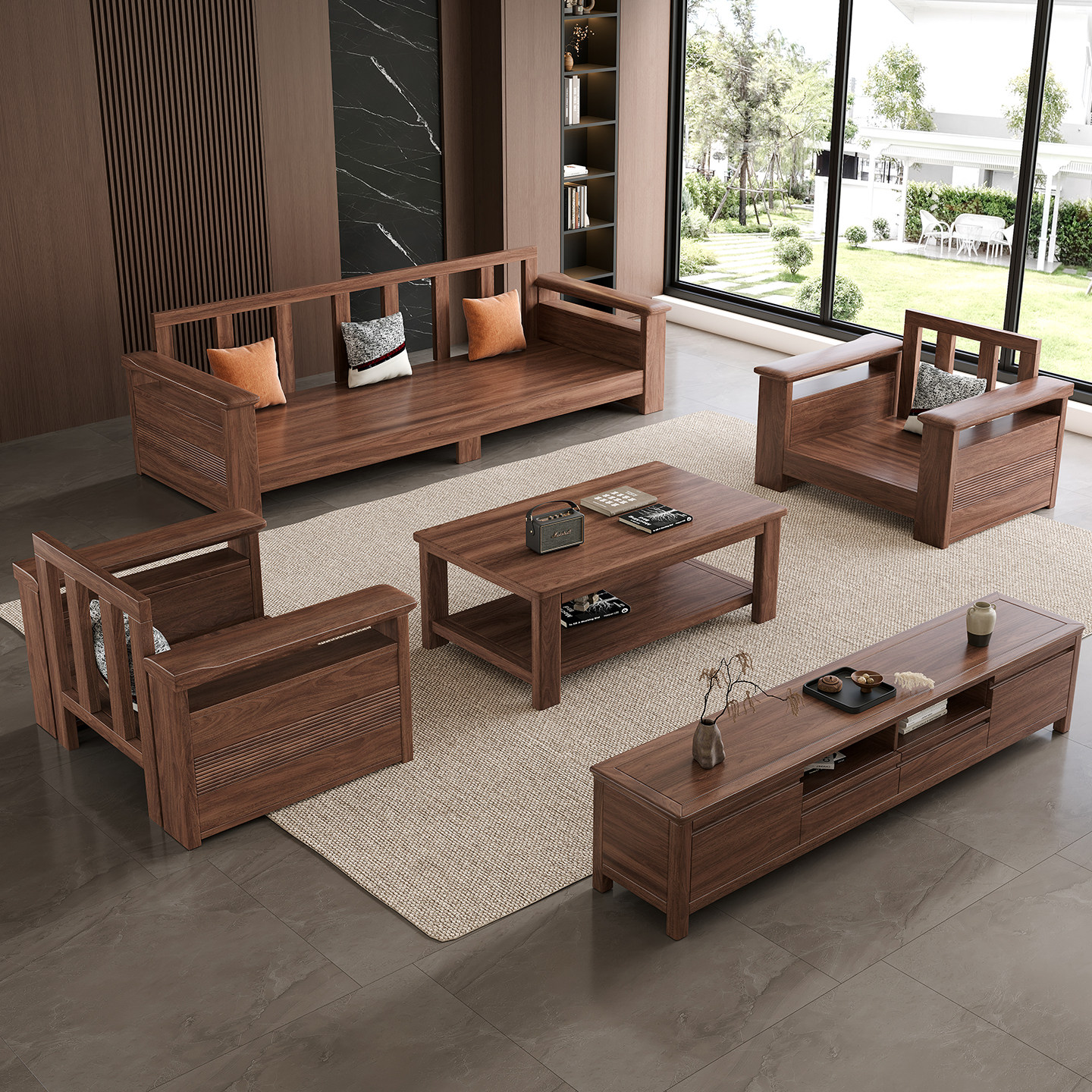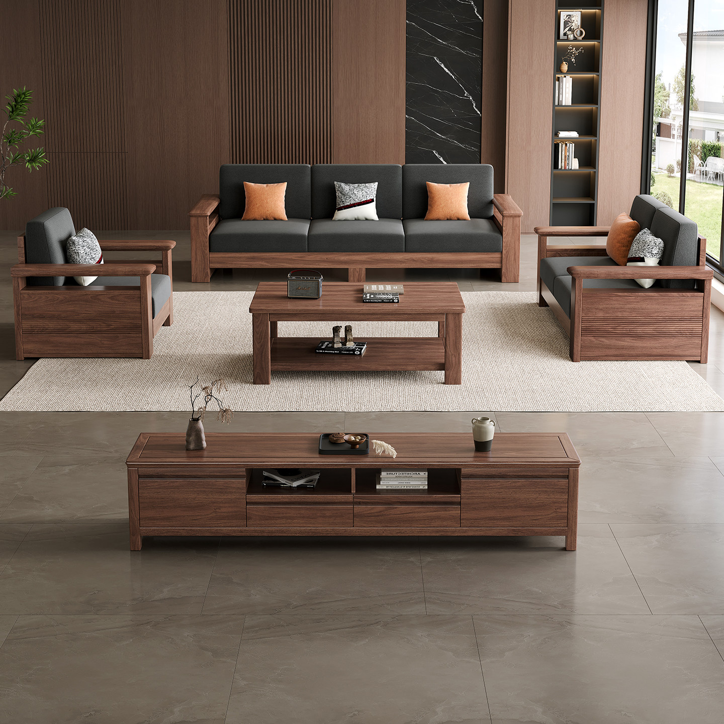 新中式黑胡桃木实木沙发组合现代简约客厅别墅轻奢大小户型家具