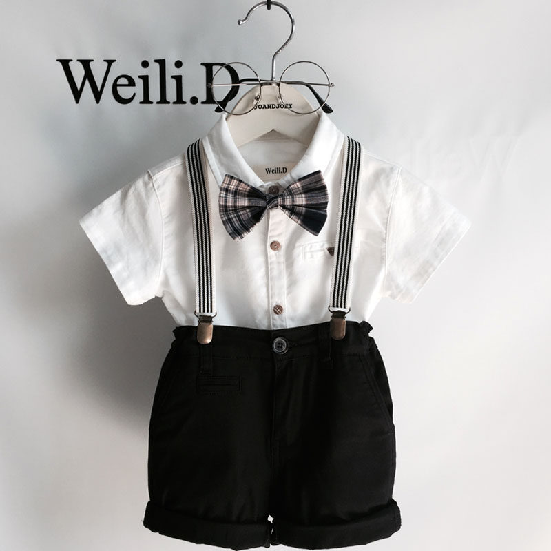 男童周岁礼服套装 小孩子花童摄影演出服儿童白衬衫黑背带裤洋气