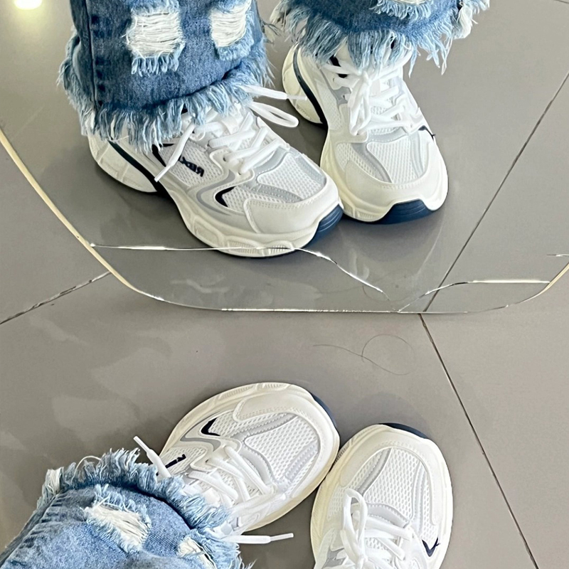 人本女鞋老爹鞋2025新款春季厚底轻便鞋子网面休闲百搭透气运动鞋