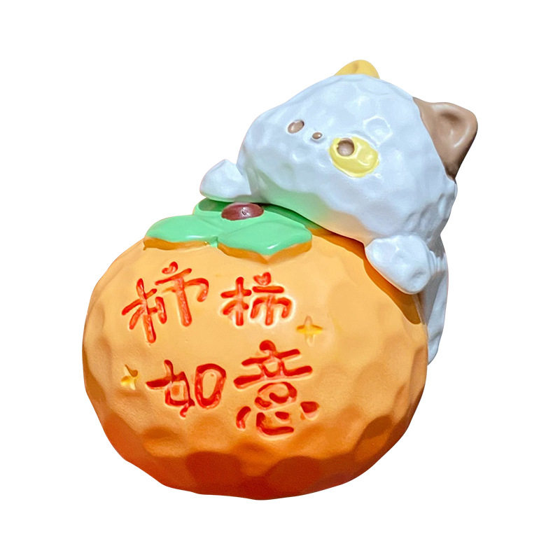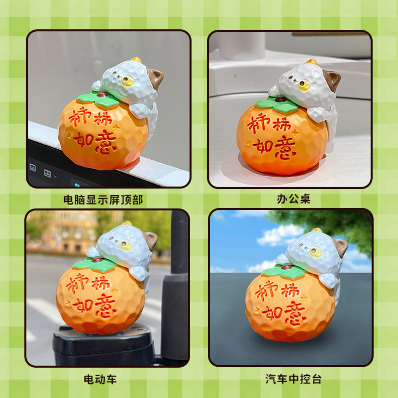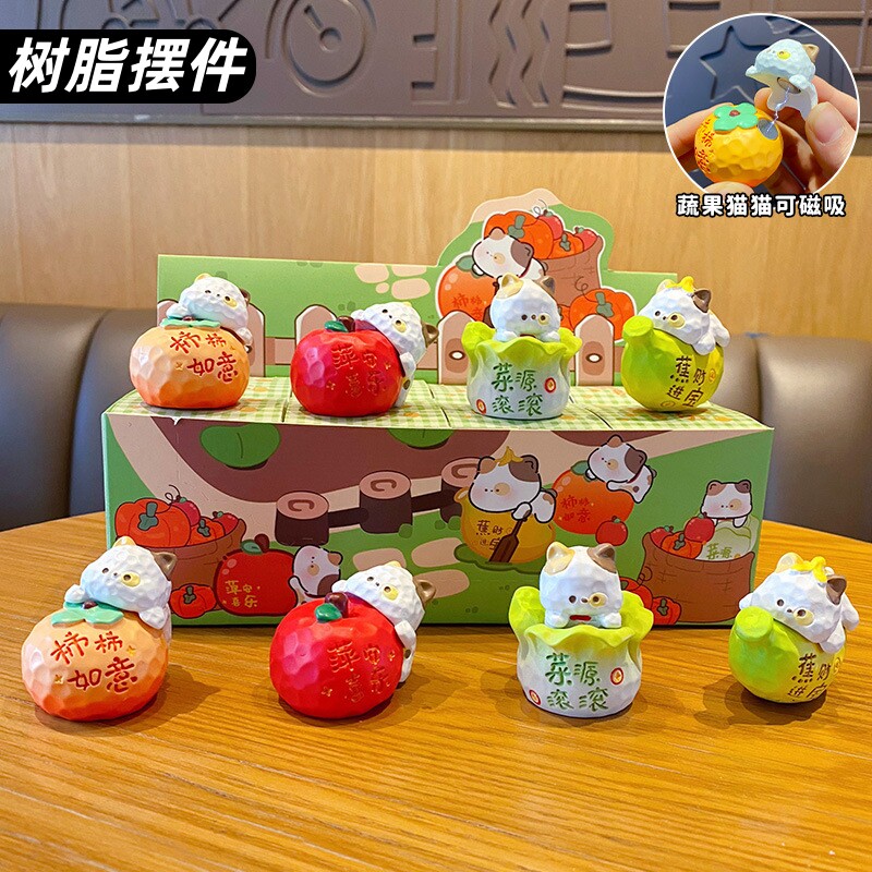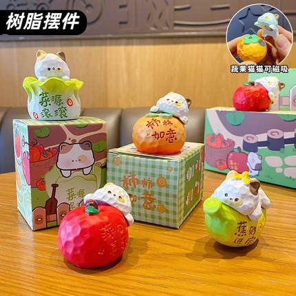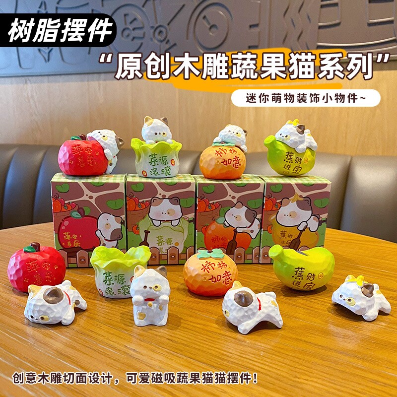 可爱木雕风蔬果喵喵树脂摆件创意磁吸公仔桌面装饰品车载摆件
