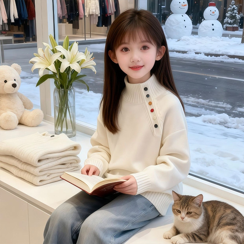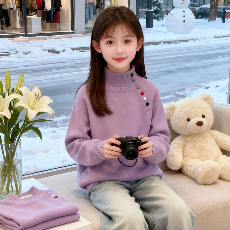 女童高领毛衣冬季2025新款韩版儿童加厚毛线衣针织衫女孩打底上衣
