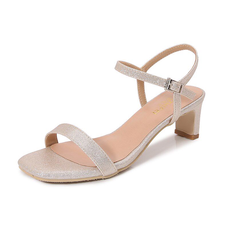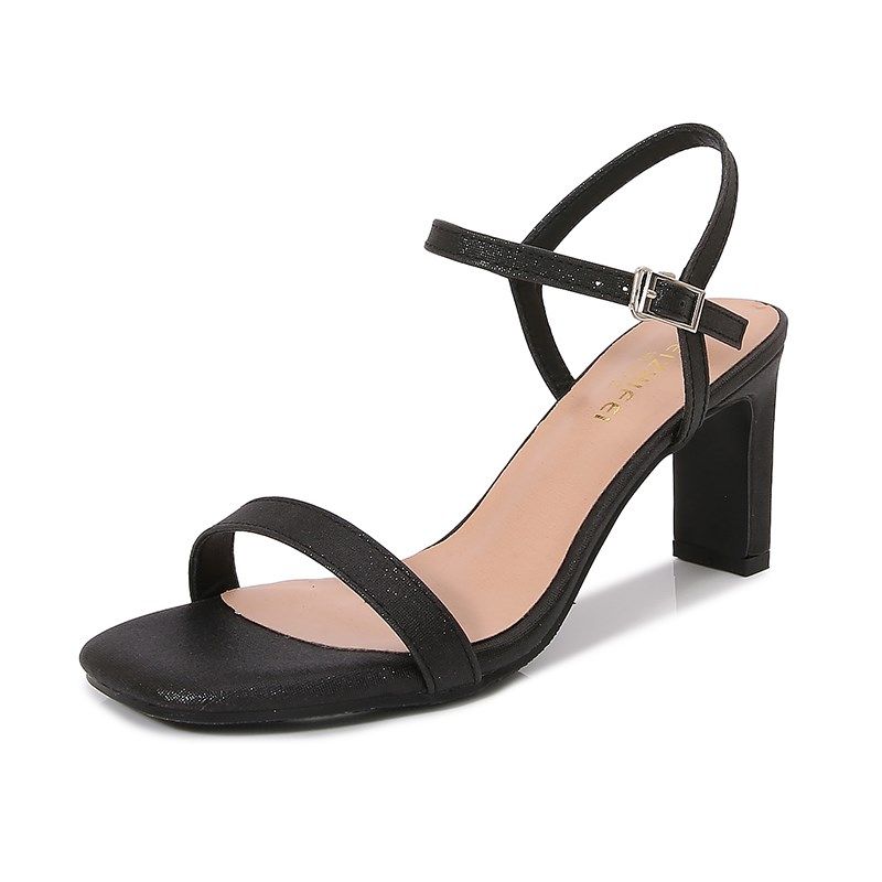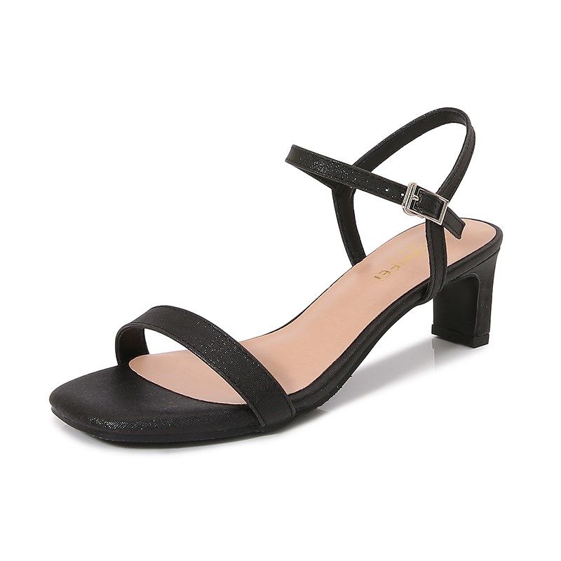 2025夏季新款百搭粗跟一字带女凉鞋简约5厘米7厘米中跟方头凉鞋女