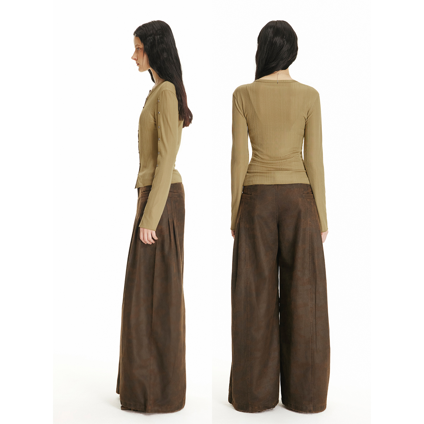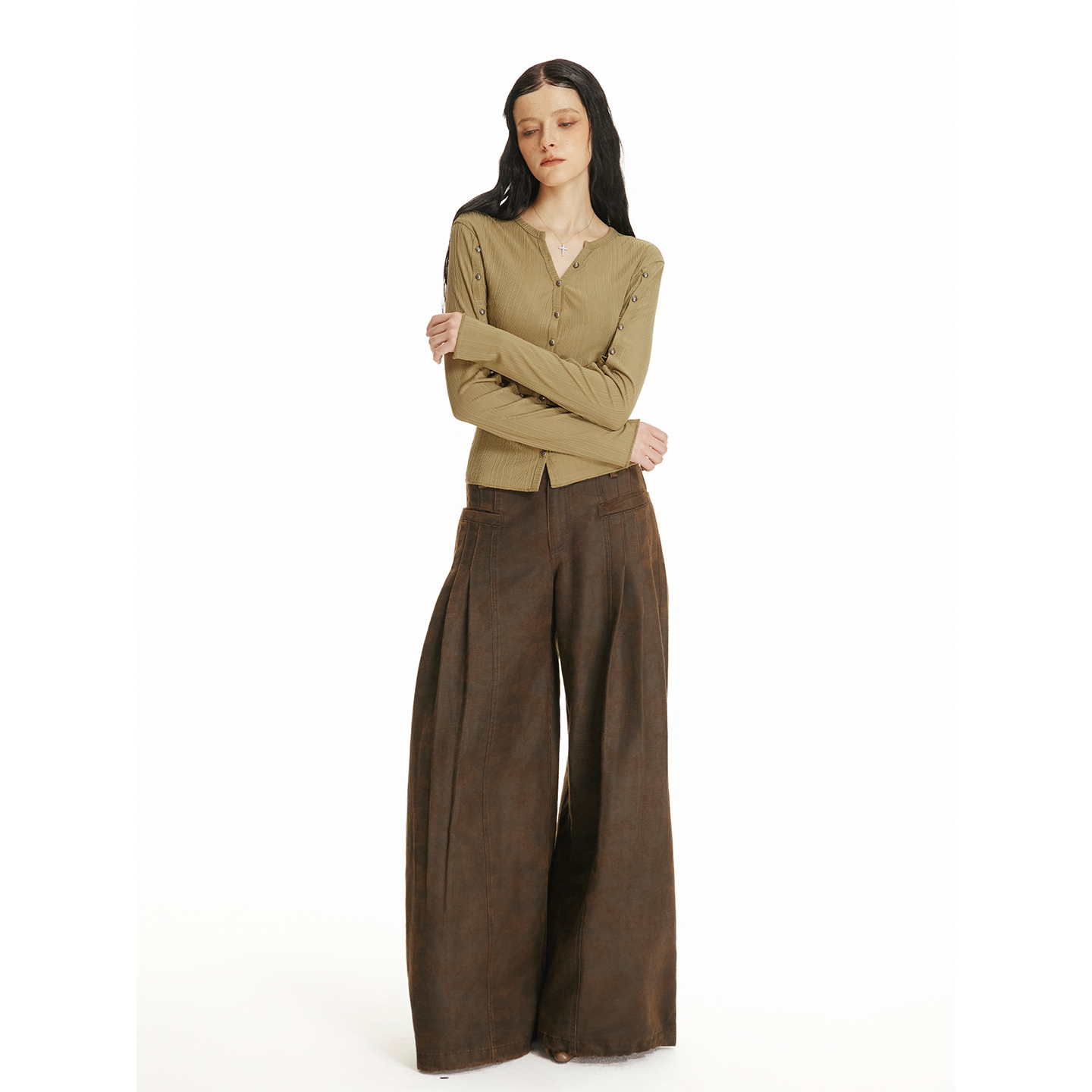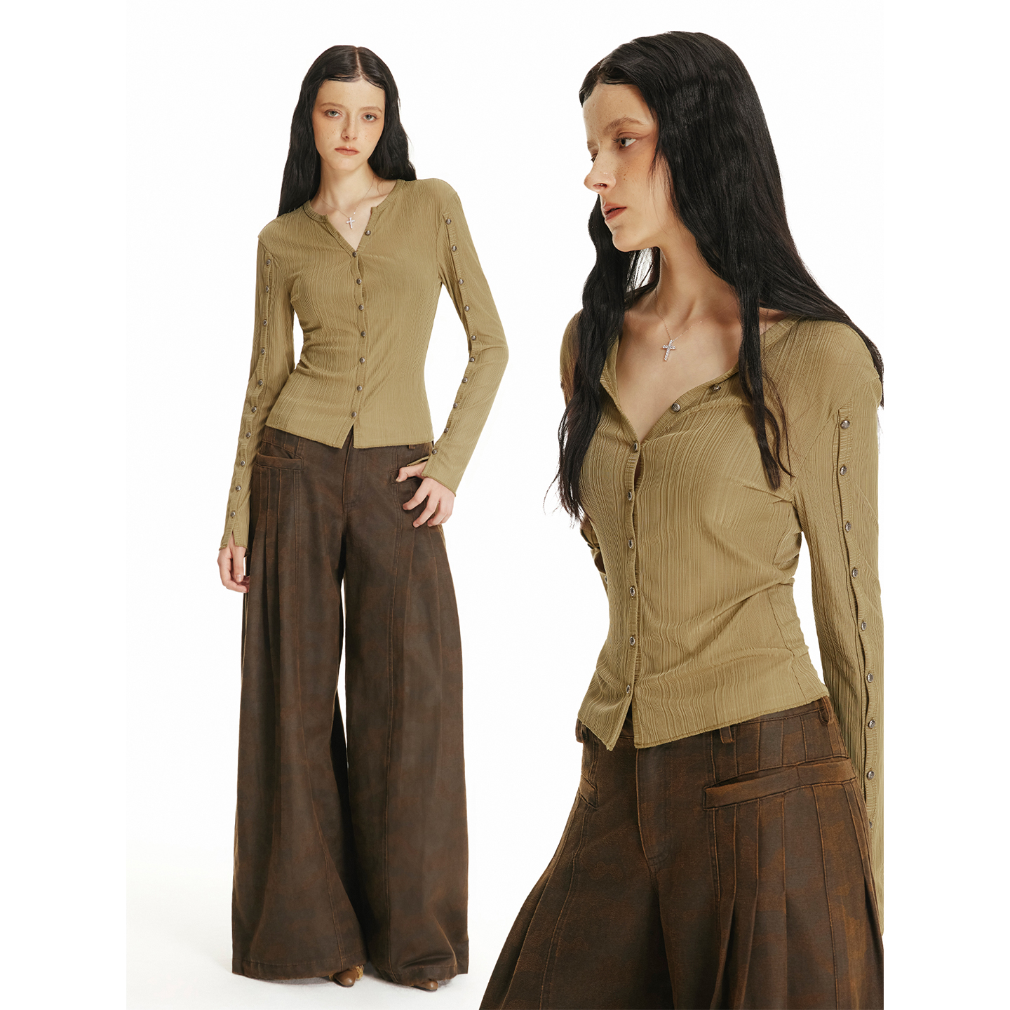 USS 细条纹针织上衣女金属手缝扣可解构袖口个性时髦辣妹长袖开衫