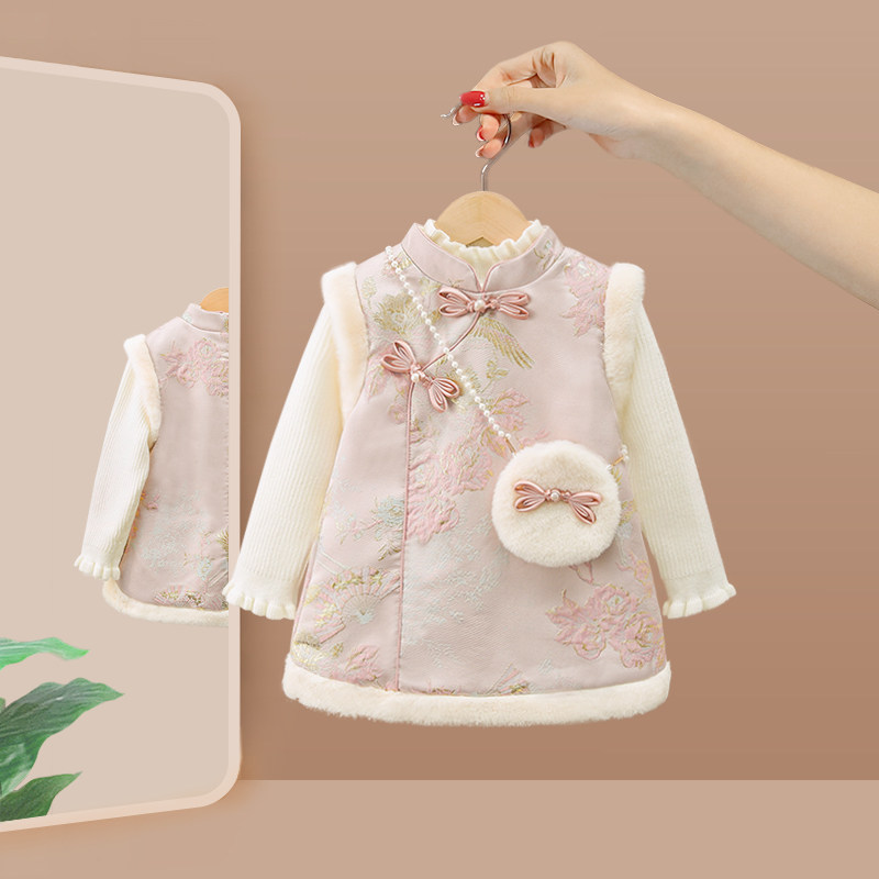 女童旗袍连衣裙冬装拜年时髦洋气汉服儿童宝宝公主过新年周岁礼服