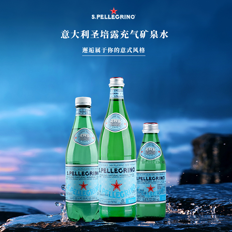 圣培露500ml*24塑料瓶整箱意大利充气天然矿泉水含气苏打水